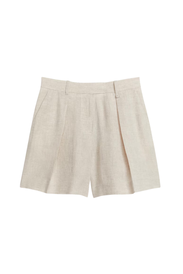 Effortless elegance in every detail — a white blouse with delicate embroidery, paired with beige linen shorts and camel accents. Perfect for sun-soaked days.