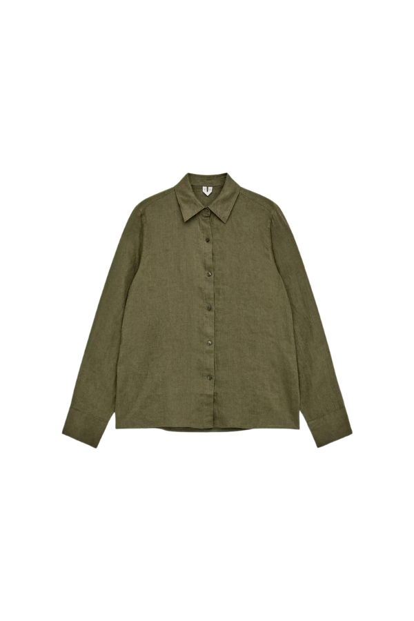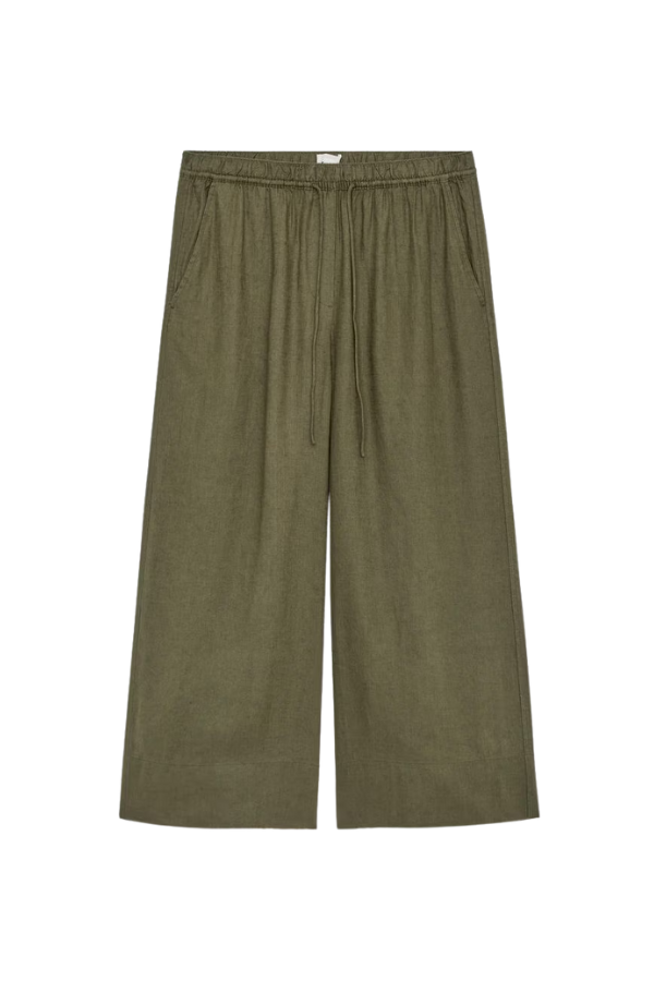 Simplicity meets style in a khaki linen set and crisp white top, complemented by a chic straw bag. Perfect for effortless days of sunshine.