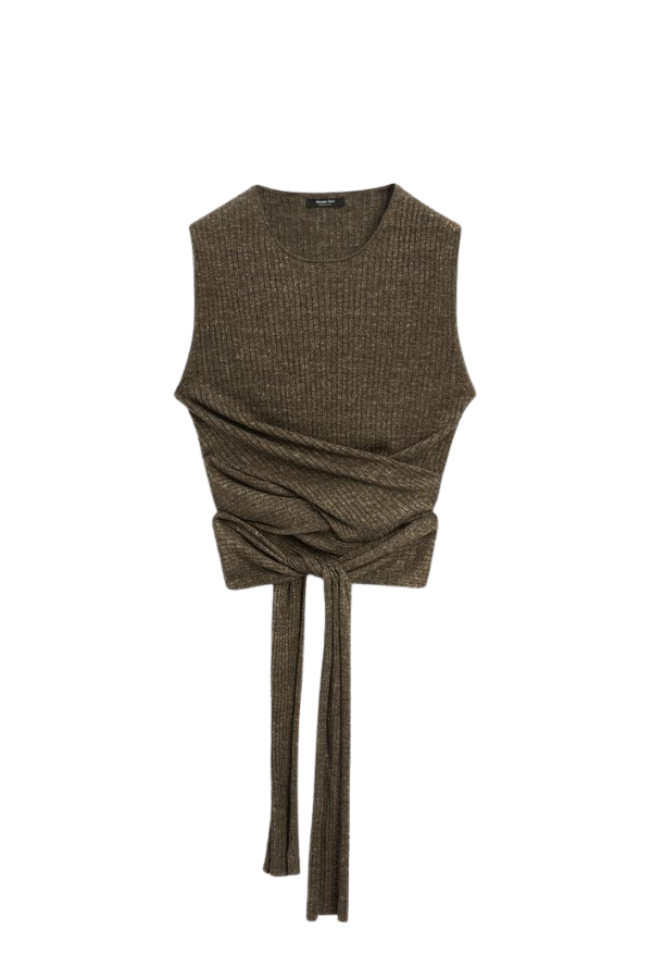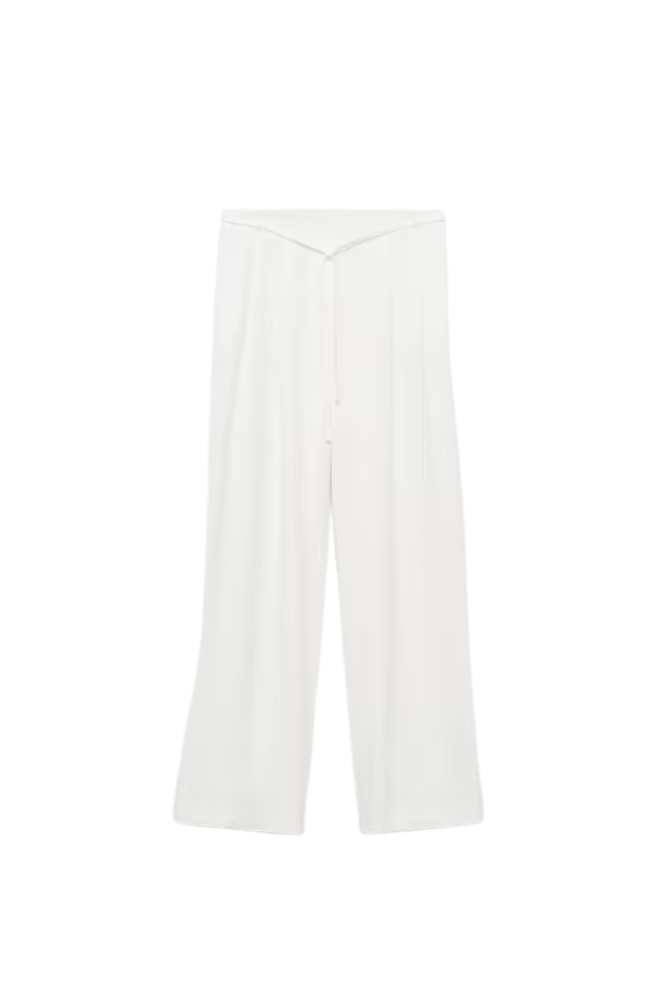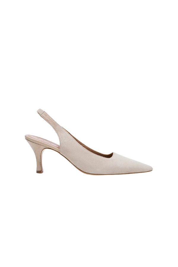 A perfect balance of neutral tones and luxe accents—khaki top, crisp white pants, and nude heels with gold details for a look that’s effortlessly sophisticated.